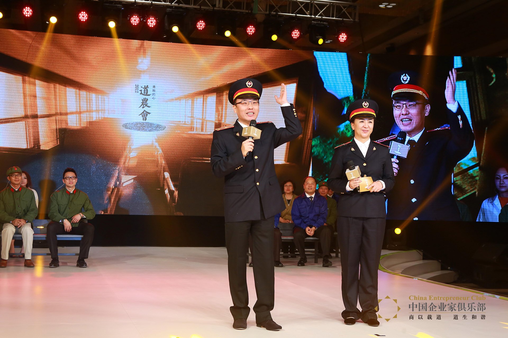 本屆道農(nóng)會的一大亮點是第一次采取了情景設(shè)定模式:所有演出均模擬在一輛飛馳的列車上進行,各飯桌則以中國企業(yè)家俱樂部理事企業(yè)的名稱命名,如“聯(lián)想號”、“新東方號”、“阿里巴巴號”、“吉利號”等。晚上8時,道農(nóng)會在火車的鳴笛聲中拉開帷幕。由俞敏洪和王潮歌扮演的乘務(wù)員將大家目光引到了車廂(舞臺)內(nèi)。