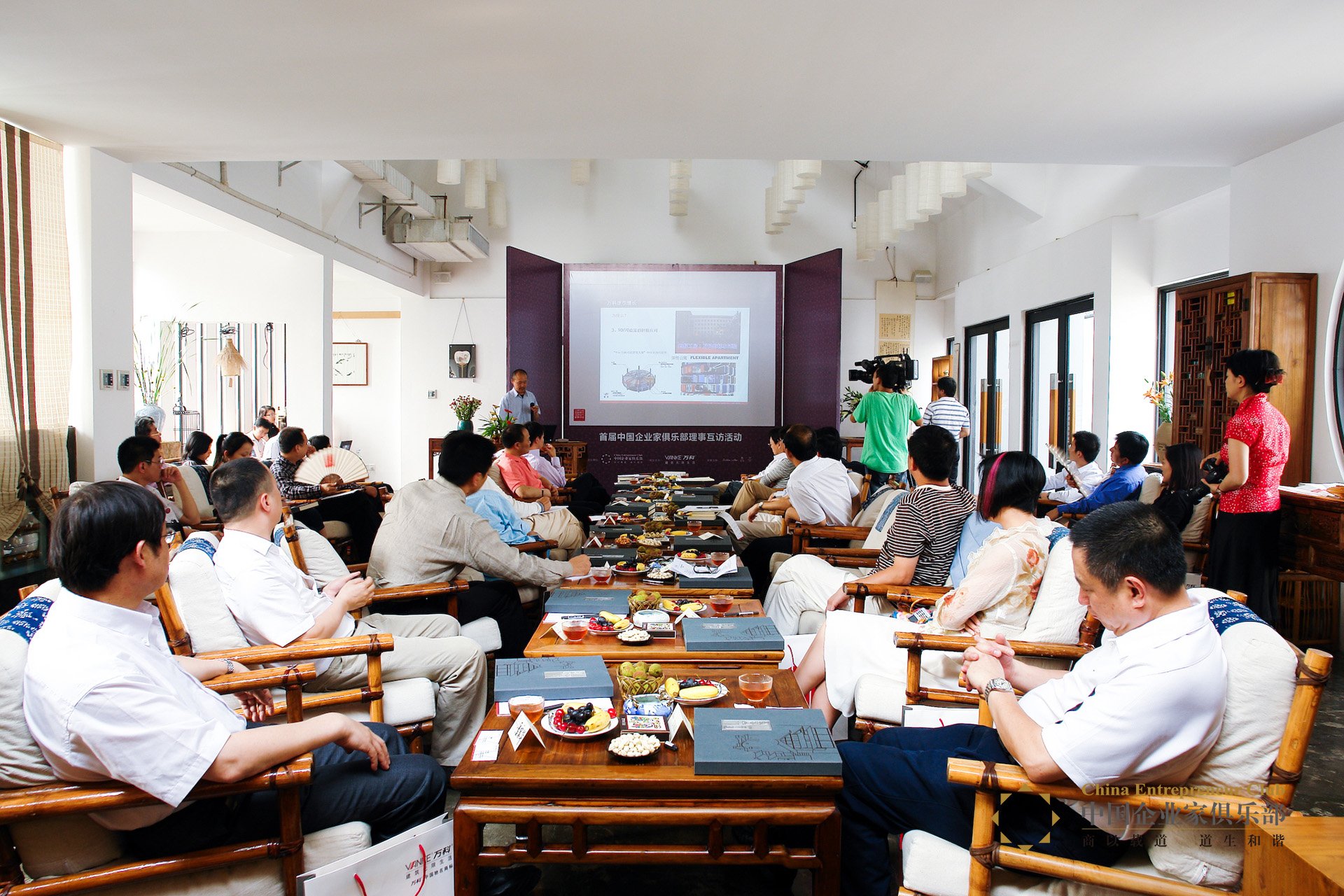 理事互訪的第一站選擇了萬(wàn)科。俱樂(lè)部榮譽(yù)理事、萬(wàn)科企業(yè)董事長(zhǎng)王石則選擇在位于深圳坂田的萬(wàn)科第五園與各位理事交流。在這座“骨子里的中國(guó)”式的庭院里,白墻,青瓦,天井,小橋,流水,疏漏的窗花,精致的庭院,淡淡的影調(diào),上下流露著蘇徽江南園林式的建筑風(fēng)格,給人們展現(xiàn)建筑與自然的融合,建筑與水的親密結(jié)合。
